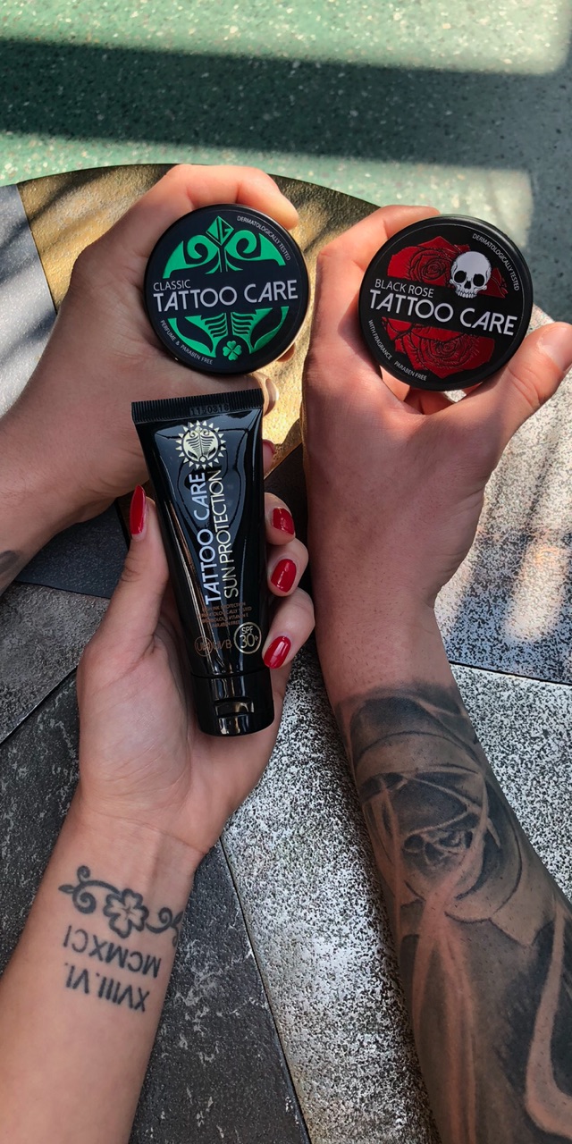 Try the simplest way to care for new or existing tattoos. The products are ideal for use immediately after tattooing or to maintain the intensity of the colors. Tattoo Care ointments are entirely produced in Slovenia from selected natural ingredients of the highest quality.