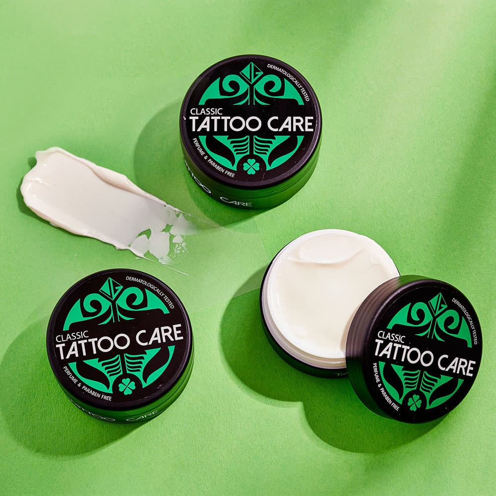 Tattoo Care ointment made from specially selected natural ingredients. For use immediately after tattooing or for care and renewal of older tattoos. You will feel and see the positive effects from the first application. Suitable for all skin types.